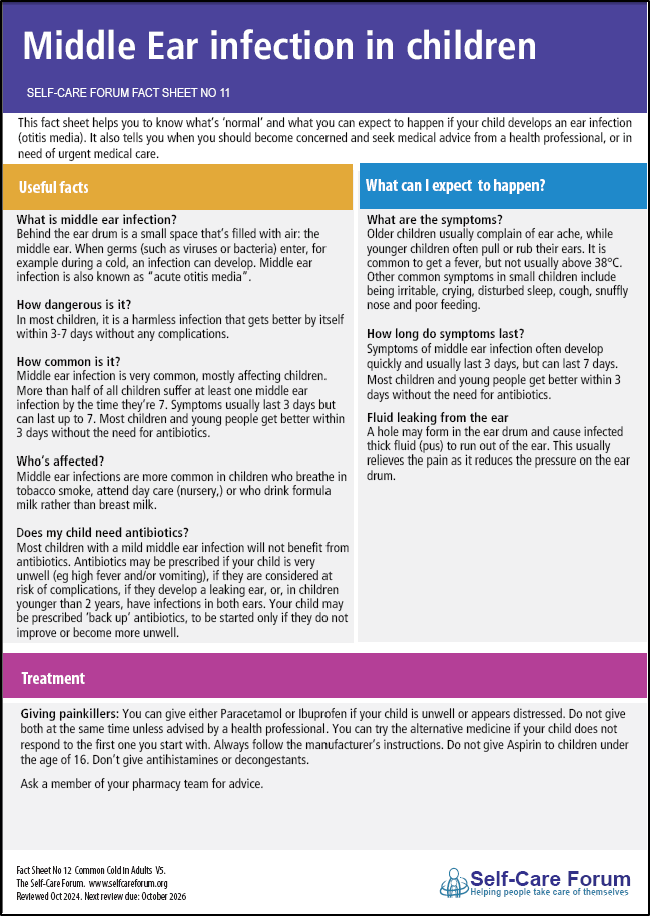 A member of your pharmacy team can help you in assessing and treating your child’s symptoms, otherwise you can visit an NHS website.